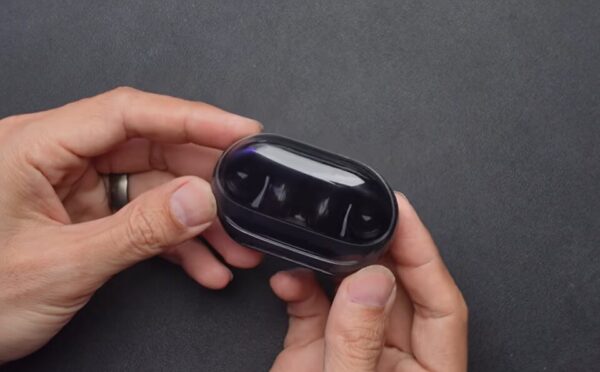 Hộp sạc được hoàn thiện với nhiều lớp vật liệu và đường nét góc cạnh, góp phần tăng tính thẩm mỹ tổng thể. Tuy nhiên, trải nghiệm thực tế cho thấy việc mở hộp chưa thực sự thuận tiện do bề mặt trơn và thiết kế chưa tối ưu về độ cân bằng lực.